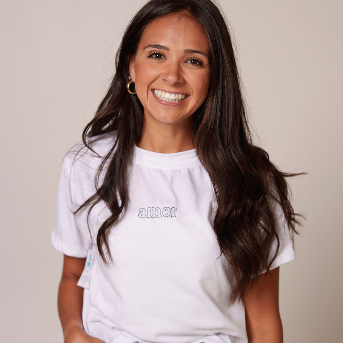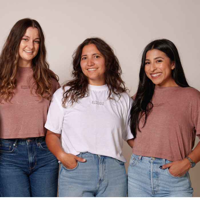 These shirts were sewn AND embroidered by two entrepreneurs in our programs! Hand stitched on each shirt is the word "Amor" or "love".