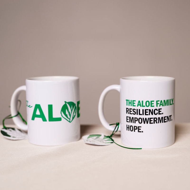 Sip your morning coffee with The Aloe Family! These mugs were hand printed by Dolly, and are sure to make your morning brighter!
